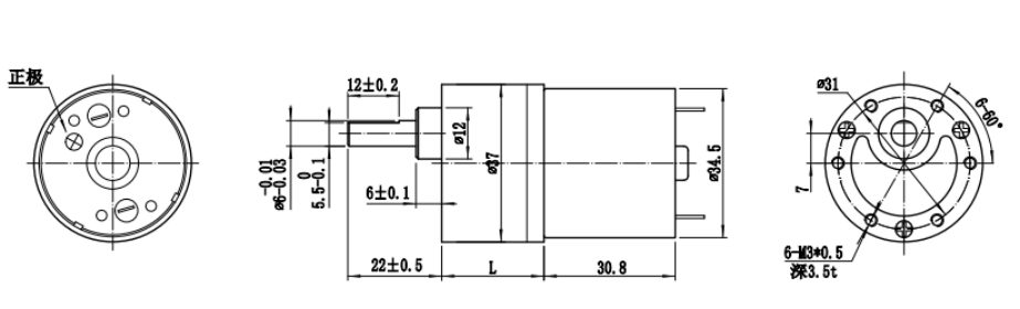| 1、The above motor parameters for reference, please refer to the actual sample. 2、Motor parameters and output shaft size can be customized. 3、Output torque = motor torque * reduction ratio * gear efficiency. 4、Output Speed = motor speed/reduction ratio. |